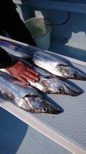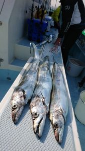 テンヤメンバーさんは、3〜15本で、テンヤトップの平山樣の内容は長さはともかく最大のタチウオの重量は1本で2kg。下の画像の3本で、5.3kgと大型タチウオも少しずつ増えて来てる様ですね。