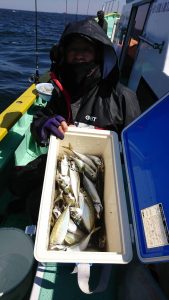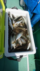 昨日、一昨日の様に手慣れたお客さまは、いらっしゃらなかったので、飛び抜けた釣果は出ませんでしたが同じぐらいの釣れ方で50匹前後で皆さま平均的に釣れました。お客さま8名さまで4番手まで50匹以上。レンタルタックルのお客さま方だけコマセとエサがどうしても棚で同調せず、少な目の釣果となってしまいました。