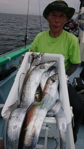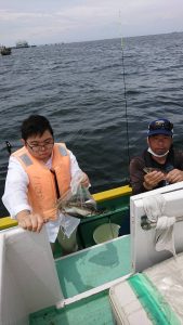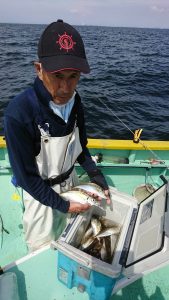 朝イチに型は出たもののその後はアタリが続かず、潮の流れが来るまでと小刻みに頻繁な移動の繰り返しで粘りに粘って、小人数ながらも皆さんキャッチ出来たのですが、結局盛り上がりは無くて移動の繰り返しでした。