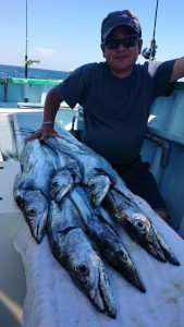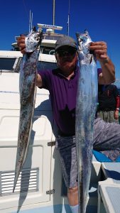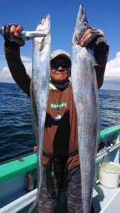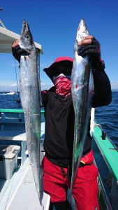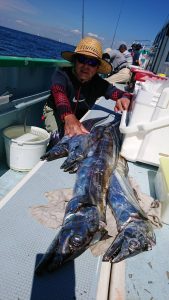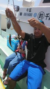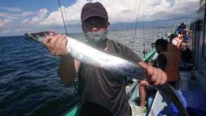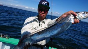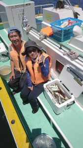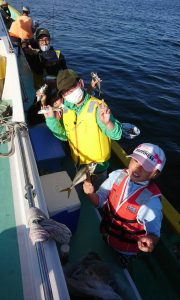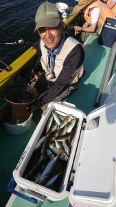 途中、雷雨の接近があり一時避難しましたがにわか雨程度で通過した後、終盤はアジと小サバの混じりでポツポツ釣れて皆さまお土産確保出来た様です。