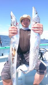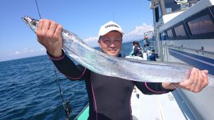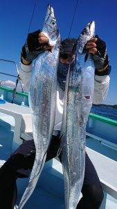 明日24日(土)は午前LTアジ船で出船確定しており、25日(日)は17号船がタチウオの仕立て船の為、16号船がタチウオ乗合船で出船しますので、エギタコ、LTアジ船、午前の堤防渡船はお休みになります。ご予約お待ちしてます。