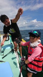 コメント: 今日もレンタルタックルのお客さまが多数だったので浅いポイントからスタートしました。