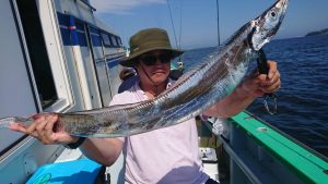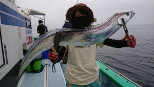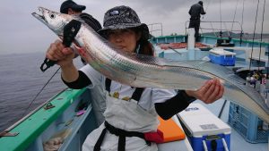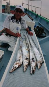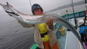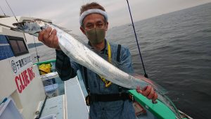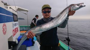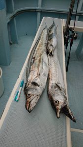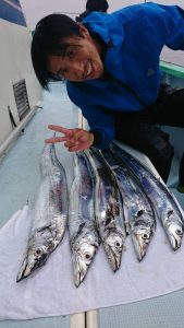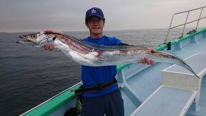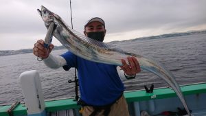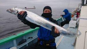 今日はタチウオの活性が低くくアタリが続かず厳しい状況でしたが、全体的には3F前後でしたが、大型も出てジグ最大は124cm。