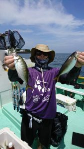 テンヤタックルではたまにはアタリが出るものの、ジグでは中々手強い状況でしたが、活発なアタリにはならなかったのですが皆さんキャッチ出来ました。