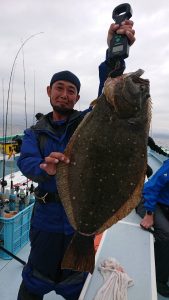 今日の最大魚は、ジグで目出さまの釣り上げた ヒラメ5.8kg!