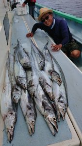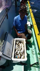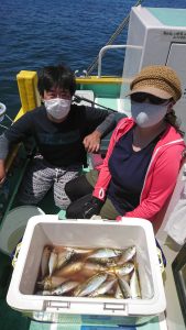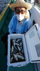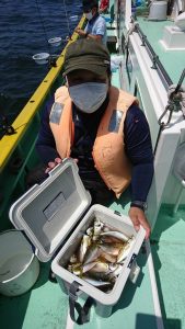小アジ主体にアタリが続いて、たまに中型も混じって釣れて、後半は潮の流れが変わってからはアタリの間が空きましたが終了まで飽きない程度にアタリが続きました。