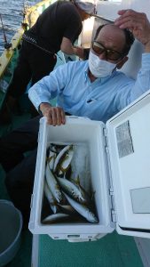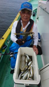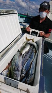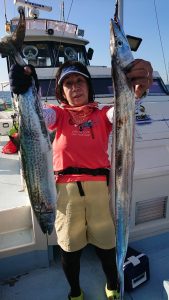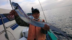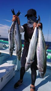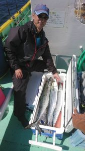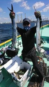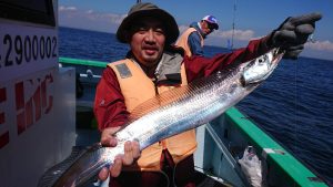 船中 サワラ5匹、バラシ無し、イナダとタチウオは各10匹前後。イシモチ、シーバス、小サバ、