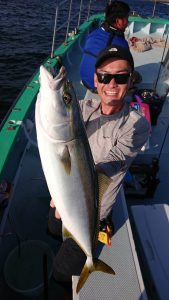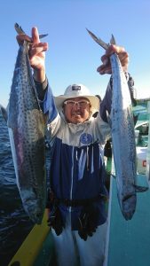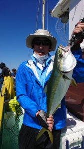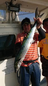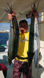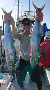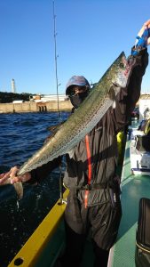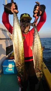 一瞬ナブラになったチャンスを逃さず、イナダの連発の後にサワラを2本キャッチ出来ました。