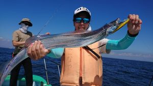 その後は鳥山やナブラがありましたがどちらもイナダとタチウオの連発だけで本命を見られず、最後は振り出しに戻り、跳ねるサワラを狙って、時間を延長して何とか3匹追加して終了となりました。