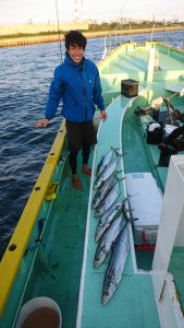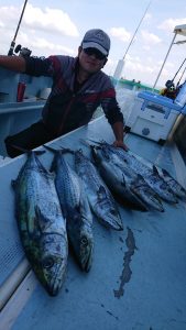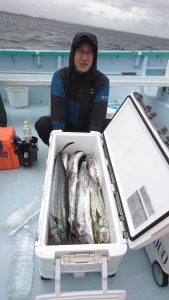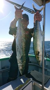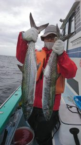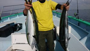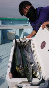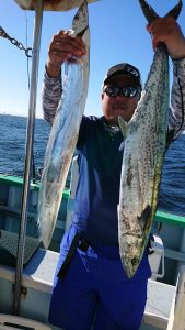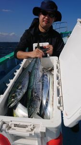 青物狙いはイナダ・ワラサまじりで、サワラは2.2kg〜3.4kgが0〜4本(船中9本)でした。