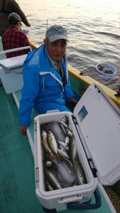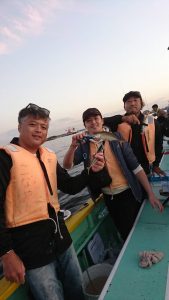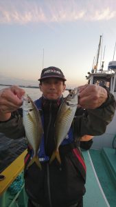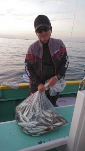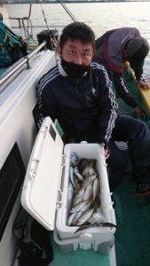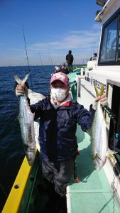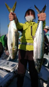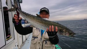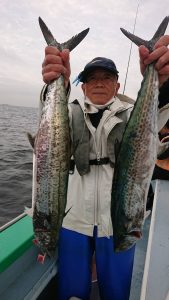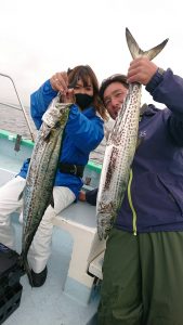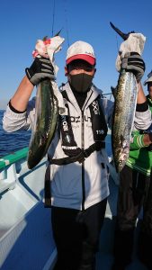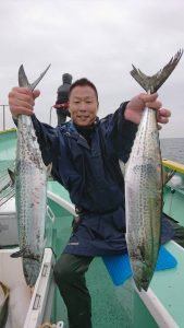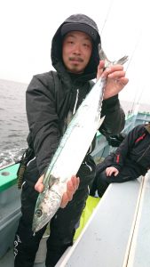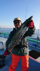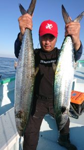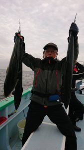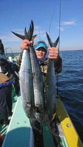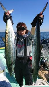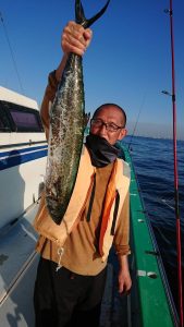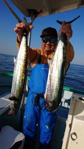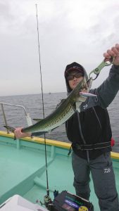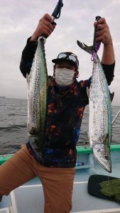 15時半を過ぎた頃からゴールデンタイムに突入。ポツポツとサワラがアタリ始め、ダブルヒット、トリプルヒット…とサワラの連発で船内は、にわかに盛り上がりました。