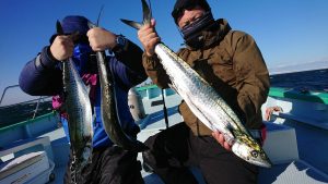 サワラ 船中8匹・イナダ 0~4匹 船中11匹・タチウオ 0~2匹 船中9匹・ワラサ1匹。