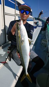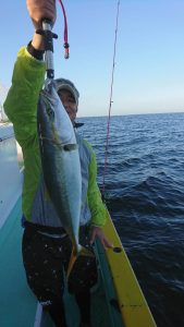 ポイント到着も鳥山やナブラは見られず、ちょっと心配な雰囲気でしたが、少しずつ鳥も集まり出してイナダのナブラも出始めて お客様のテンションも上がり始めては来たのですがイナダのヒットは少なく、たまにサワラがヒットしてくれました。