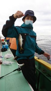今日は本降り迄はいかない雨で、北東の風もやや強目に吹き絶好のサワラ日和でした。