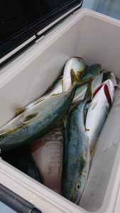 イナダの活性は高くポツポツと釣れ上がり、まじってシーバスやサワラのヒットも有り 好調でした。