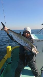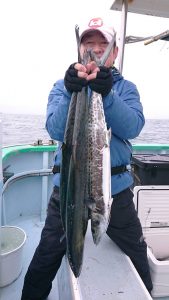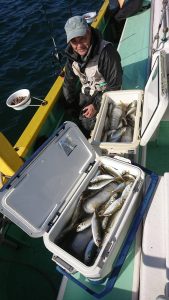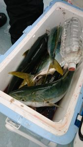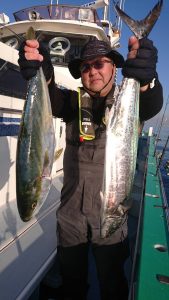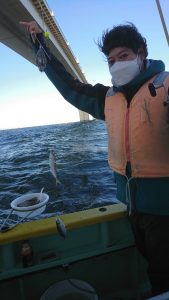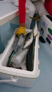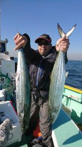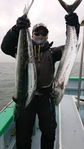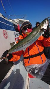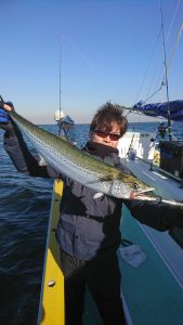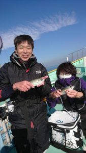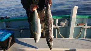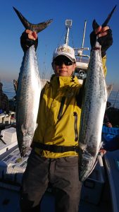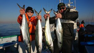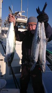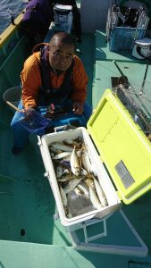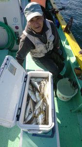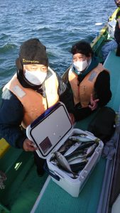 場所を変えて水深の深いポイントを狙い、20センチ弱のアジがしばし、入れ食いになり、皆さまお土産を確保して頂きました。終盤は再びサバの入れ食いになって、アジもポツリポツリと混じって終了となりました。
