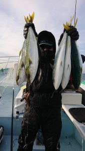 ☆☆晴れていても波しぶきを被ると頭上から濡れるので必ず、頭から波しぶきをかぶって濡れたり、コマセをかぶって汚れても大丈夫な服装上下で乗船してください。
