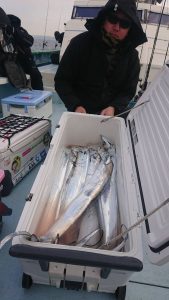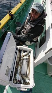 活発なアタリにはならなかったものの、平均的にキャッチ出来てサイズも良く 船中合計は102本で お1人8本弱の平均でした。