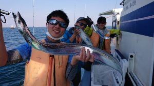 皆さん終始頑張って頂きましたが、今日はルアーでヒットするタチウオのサイズは残念なサイズがほとんどで、テンヤタックルでは80〜90cmクラスなので同じポイントに居るとは思うのですが、残念ながら良型はジグへの反応は良くなかった様です。