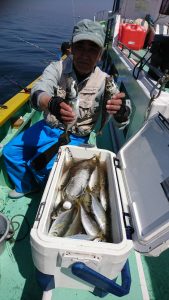 後半は薄曇りだったおかげでアタリが長続きしてレンタルタックルのお客さま8名さまも皆さまお土産を確保出来ました。