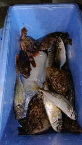 コメント : 今日は1ヵ所目から空振りしてしまい、2ヵ所目でやっと型を見れても後が続かず低調なスタートとなりましたが転々と狙っているとポツポツとアタリが出てからは、活発にアタリが続いた時間帯もあって忙しいアジ釣りが出来ました。