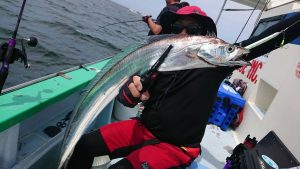 ☆☆晴れていても波しぶきを被ると頭上から濡れるので必ず、頭から波しぶきをかぶって濡れたり、コマセをかぶって汚れても大丈夫な服装上下で乗船してください。
