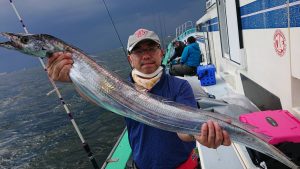 後半はサイズアップを期待して粘って見ましたが、数本はキャッチできたものの 大型タチウオは低活性でした。